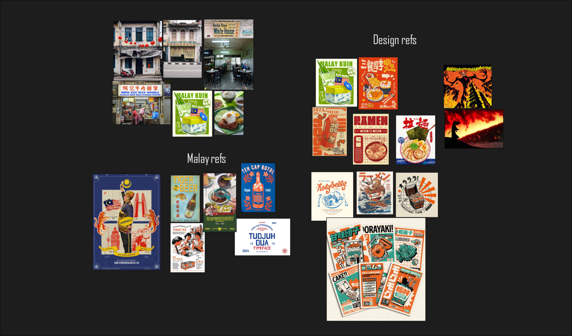 A T-shirt design for a friend’s food business. The brief was to create a vibrant, poppy design for a t-shirt to grab attention and local awareness for the brand for an audience who aren’t necessarily familiar with the ingredient Pandan. I was given full discretion for the style so I used inspiration from traditional Malay signage and cafes as well as vintage Japanese posters and ads. This was the first graphic design-y gig I worked on so it took some studying and iteration to figure out how to effectively incorporate text with images.