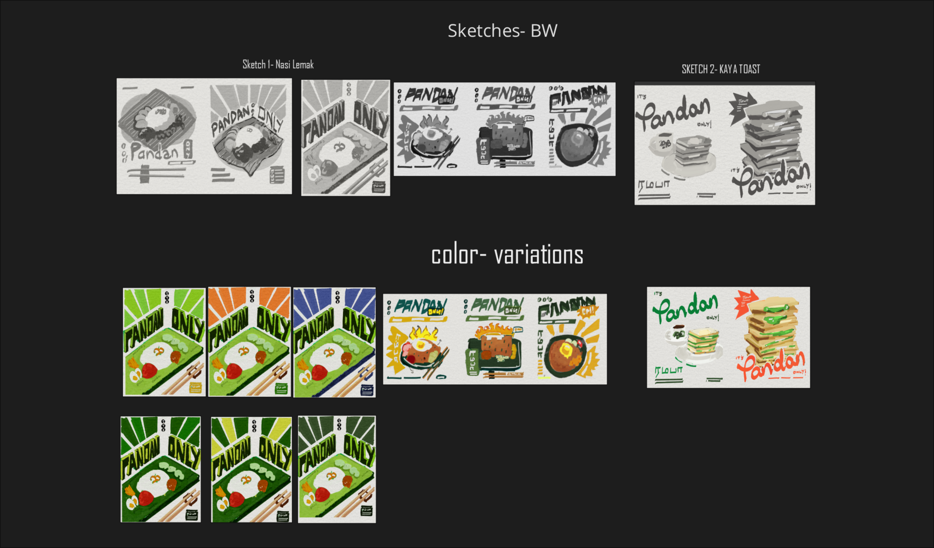 On looking back, I’m sure I was subliminally drawing inspiration from the branding of my childhood favorite drink- Milo! One of the notes I got early on was to not alienate potential customers by making it exotic seeming, so I like how it turned out! It’s Malay without being explicitly so.